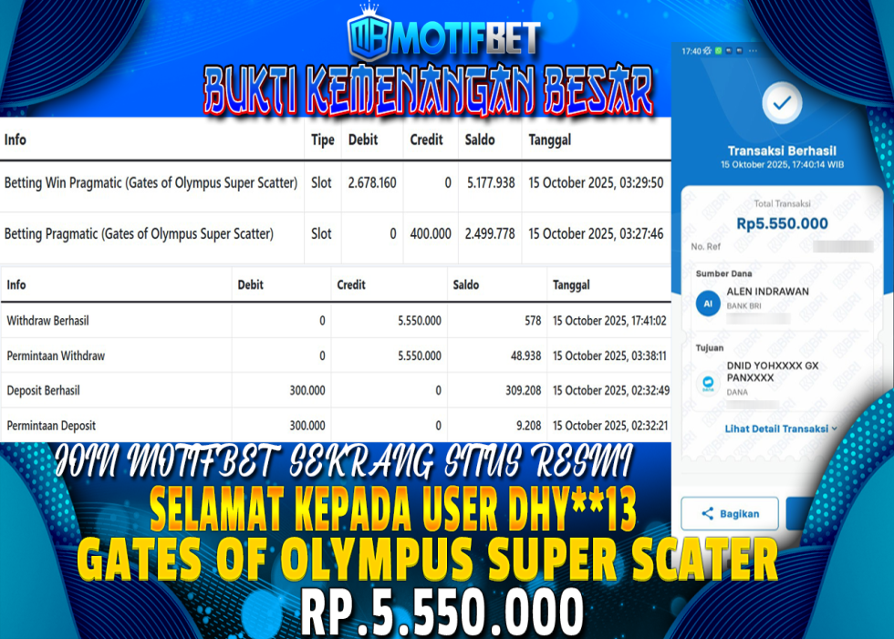 MOTIFBET JACKPOT GATES OF OLYMPUS SUPER SCATTER RP 5.550.000,- DIBAYAR LUNAS