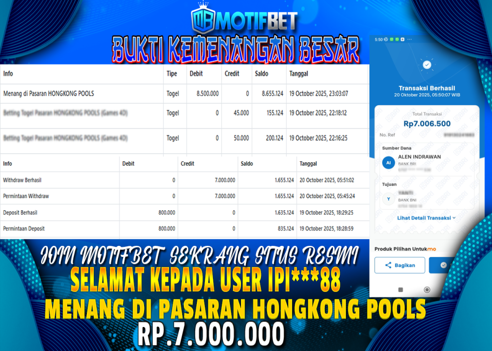 MOTIFBET JACKPOT HONGKONG POOLS Rp.7.000.000.,- LUNAS