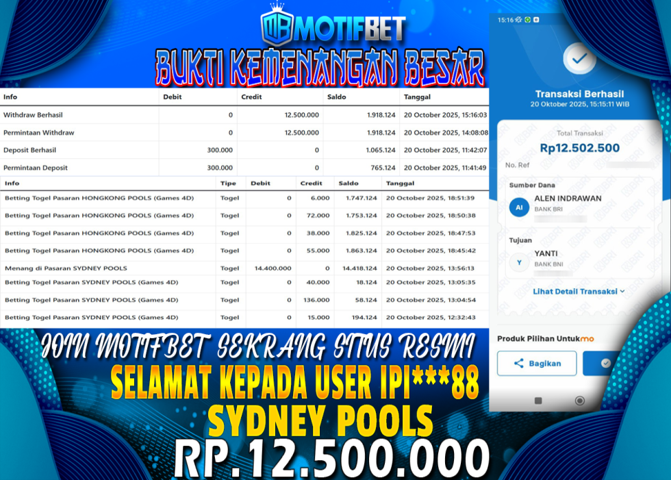 MOTIFBET JACKPOT SYDNEY POOLS Rp.12.500.000.,- LUNAS
