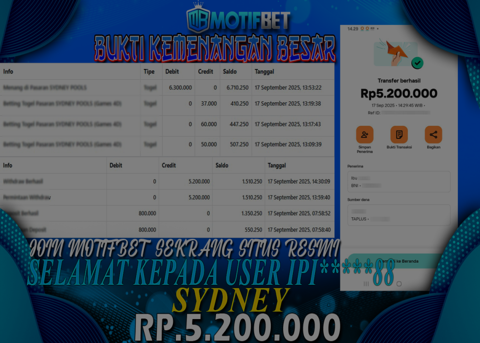 MOTIFBET JACKPOT SYDNEY POOLS Rp.5.200.000.,- LUNAS